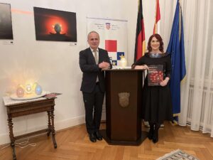 Berlin/ U Veleposlanstvu Republike Hrvatske je jučer svečano otvorena izložba naslova „Svjetlosne pisanice s otiskom baštine“ autorice dr. art. Dijane Nazor Čorda.