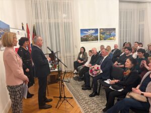 Berlin/ Kulturna večer organizirana u Veleposlanstvu Republike Hrvatske u Berlinu započela je prigodnim pozdravnim rečenicama organizatorica programa, Tamare Janković, koordinatorice Hrvatske nastave Berlin i Sonje Breljak, urednice Hrvatskog glasa Berlin a potom i prigodnim govorom veleposlanika Gordana Bakote.