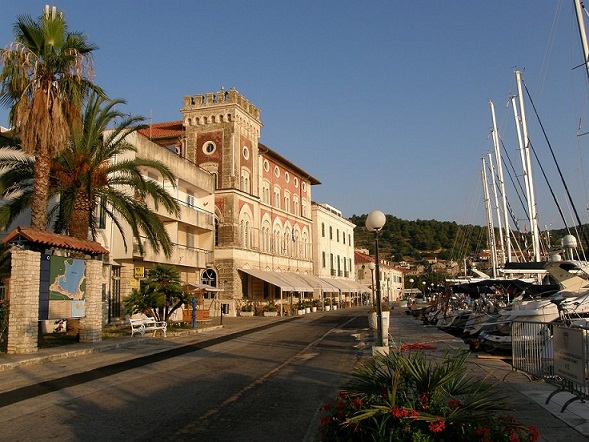 Vis/Dragi Hrvati u Berlinu, ( i svi vi drugdje širom svijeta, op.u) pogledajte predivni motiv iz Visa! Ova monumentalna zgrada, u sredini, na kojoj je bilo ispisano NARODNI DOM a 1991. je vraćen izvorni naziv HRVATSKI DOM, je središnji kulturni centar, u kojem je i kazalište.