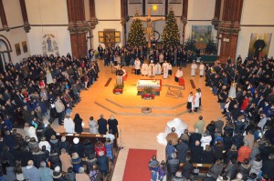 Prvo misno slavlje, takozvanu dječju polnoćku, predvodio je papinski nuncij, Nikola Eterović. Djeca predvođena učiteljicom Hrvatske nastave, pripremila su i izvela kratki igrokaz o dolasku Josipa i Marije u Betlehem, rođenju Isusovu i …