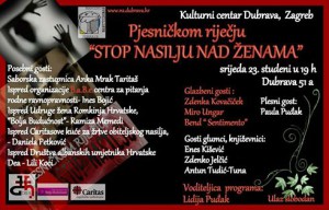 “Pjesničkom riječju STOP NASILJU NAD ŽENAMA” naslov je manifestacije koja se 23.11.2016. godine održava u preko 20 gradova u Hrvatskoj a u povodu Međunarodnog dana borbe protiv nasilja nad ženama.