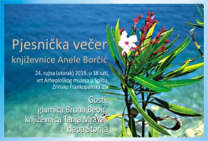 Split/ U utorak, 24. rujna, održava se Pjesnička večer književnice Anele Borčić u vrtu Arheološkog muzeja u Splitu.