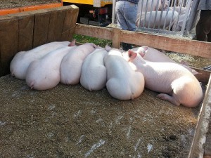 Brojne prikolice sa usnulim svinjama, malim i velikim, tek poneka odvrne surround ako joj se dohvate repa i uha, te je strpaju u daljnji transport. Poslagani na livadi, auto do auta, svatko izložio svoje dvonošce i četveronošce kako je najbolje znao.