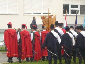 Dort war ich schon oft. Aber heute erwarte ich irgend etwas besonderes. An den Häusern sehe ich die ersten kroatischen Fahnen. Sehr wenige für den heutigen Anlaß, obwohl die Kroaten bei der kleinsten Gelegenheit Flagge zeigen.