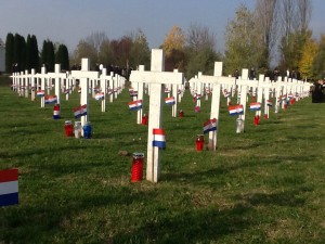 Schließlich erreiche ich den Friedhof. Ich gehe zu den Kreuzen. Ich stelle meine Kerze an ein freies Kreuz und lege meine rote Rose dazu. Es ist mein Rose und meine Kerze für Kroatien.