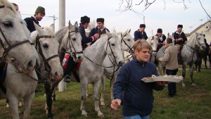 Već od jutra svi su na stadionu seoskog ligaša NK Goleo, a kako ove godine nema snijega, teren je pobijelio od rasnih lipicanaca. Nisam baš brojio, ali rekli su mi da je 60-tak konja i konjanika iz 15.-tak konjogojskih udruga iz okolice i čitave Slavonije, Baranje i Srijema.