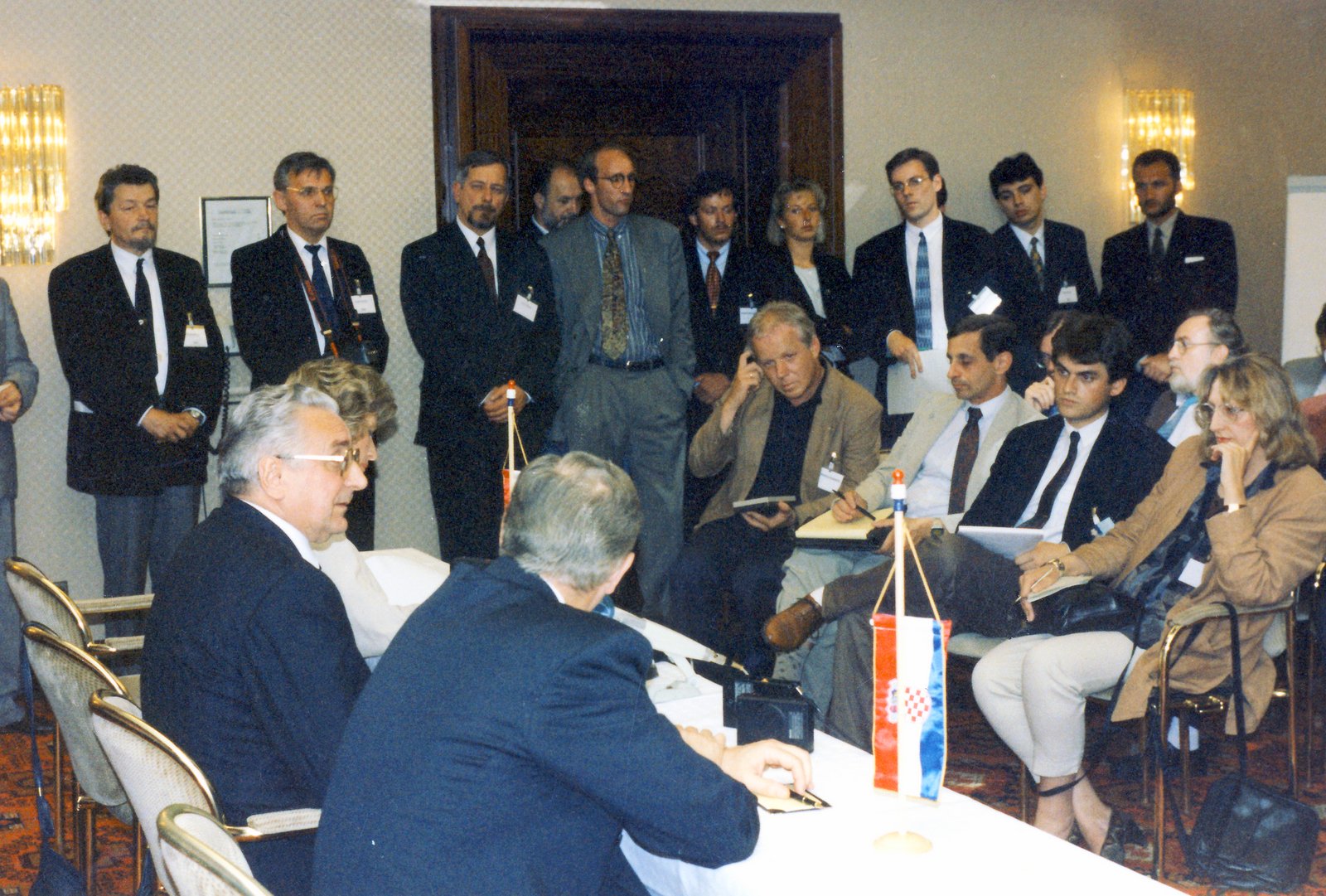 I tada je bio potpuno isti scenarij. Tuđman, Kohl i Genscher sastaju se u kancelarovom bungalovu, nakon toga zajedničke izjave za medije ispred bungalova, velika presica u hotelu Holiday inn… ma čudo jedno.