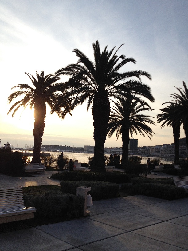 jedim na klupi i gledam južno pročelje Palače. Zraci zalazećeg sunca kao da se igraju na zidovima.