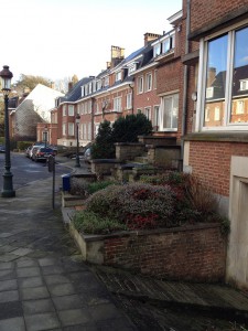 Tako su u Dalmaciji skučenost prostora i vrućina uvjetovali gradnju simpatičnih, uskih ulica u žargonu znanih kao kalete. A, ovdje u Briselu, kuće su građene u nizovima, nema prostora između njih, jedna se nastavlja na drugu, izgledaju sve iste. Građene su od crvene opeke, često prebojane u bijelo. Tako se štedi na prostoru, ali i na grijanju.