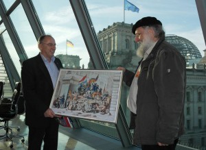 U našoj grupi je bio i lokalni berlinski član hrvatske zajednice, umjetnik Ivo Cenkovčan koji je gospođi Mihalić darovao sliku (Skok) a mi smo gospodinu Juratoviću predali likovni rada iz 19. stoljeća (preslika), prvo povjesno pojavljivanje hrvatske i njemačke zastave u javnosti, događaj iz svibnja 1848. godine, rekao nam je u razgovoru predsjednik HKZ Wiesbaden, Ivica Košak opisujući trodnevni izlet članova ove zajednice tijekom kojeg su još, dan poslije našeg razgovora, posjetili i spomenik Marku Maruliću u berlinskoj četvrti Wilmersdorf.