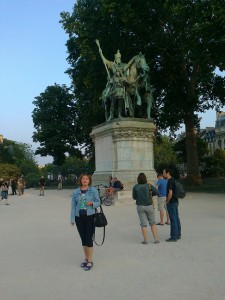 Ispred crkve je veliki metalni kip ratnika u oklopu, ali sa krunom na glavi. Ratnik je dostojanstven, cijeli u pokretu iako ne jaši nego stoji, jednom rukom vodi konja, a u drugoj dignutoj ima žezlo. Kip te privlači da zastaneš i upitaš se o kome se tu radi. „Toliko je bilo francuskih kraljeva“, pomislim „koji je to zaslužio da upravo ispred ove crkve ima spomenik.“