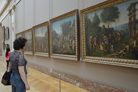 Dakle, šetamo nas tri Luvrom. U krilu Denon, posjećujemo i Mona Lizu, slavnu sliku oko koje je gomila svijeta. Okej, čudan je, zagonetan osmjeh u Mona Lize. I to je sve. Slika je iza stakla, može se gledati samo s više metara udaljenosti. Izgleda poput vrapca među kanarincima. Ili poput vrapca u kavezu. Pa to privlači pozornost. U muzeju je dozvoljeno fotografiranje bez blica pa koristimo prigodu uhvatiti barem djelomice te ljepote i nevjerojatne plodove ljudskog uma i duha.