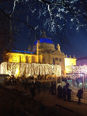 Zgrada Umjetničkog paviljona lijepa je u svako doba godine, a ove godine zablistala je u posebnom svjetlucavom blagdanskom ugođaju. Ispred zgrade sa južne strane je bilo napravljeno klizalište. Bilo je baš veselo posebno navečer na Tomislavovom trgu uz svu tu mladost, glazbu, svjetlost…šušur. Vraćajući se sa posla, a već je padao mrak i bila bi upaljena svjetla zastala bih u uživala u tom prizoru. Makar u mislima ponovo bih bila dijete sa klizaljkama.