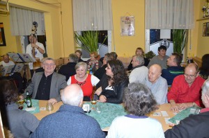 Also, versprach ich zu diesem Abend der Liebhaber der kroatischen Musik mit fünf-sechs Freunden zu kommen und so war es dann auch gewesen. Sie sind dann auch vor mir gekommen- Ivan, Mira, Ankica, Nada, Željko , Petar …es war schön uns alle in der Gesellschaft der Deutschen zu sehen. Der kleine Raum „ Zum Kegel“ war ganz ausgefüllt. Alle hakten sich untereinander ein und tanzten auf den Stühlen, bewegten sich im Musikrhytmus. Wellebit spielt und die Vokalistin singt, unsere Đurđa Brozičević.