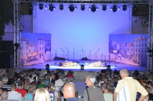 Dakle, ugodna, topla i lijepa noć ispod zvjezdanog neba. Mjesto radnje: Ljetno kino u Makarskoj. Vrijeme: 20 i 30 sati. Počinje 11. po redu festival klapa uz mandoline i gitare.