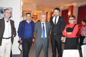 U Berlin napokon stigosmo oko jedan sat iza ponoći. Dočekala nas je naša draga urednica Sonja Breljak, s okrjepom i udobnim posteljama. Sutradan se pokazala i kao vrsni turistički vodič, tijekom posjeta i razgleda posebnih znamenitosti grada Berlina: Brandenburških vrata, Potsdamer Platza na kome su i ostaci Berlinskog zida, Berlinske katedrale, sveučilišta, katedrale sv. Hedvige, najpoznatije berlinske ulice Unter den Linden… U gradu smo se našli i kavicu popili s trima Emilovim nećakinjama. Nakon razgleda grada i izvrsnog ručka koji nam je pripravila Sonja, uslijedile su intenzivne pripreme za večer promocije i proslave koju je HGB organizirao u prostorima Hrvatske zajednice u Berlinu.