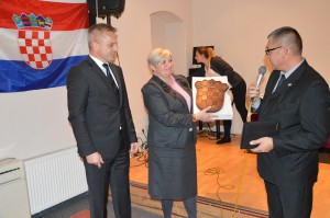 Sve su pozdravili predsjednica Hrvatske zajednice, Mira Kiš i predsjednik HDZ-a Krešo Urban a potom i veleposlanik RH, Ranko Vilović kao i predstojnik Središnjeg ureda Zvonko Milas koji je predsjednici Hrvatske zajednice, uručio hrvatski grb na dar.