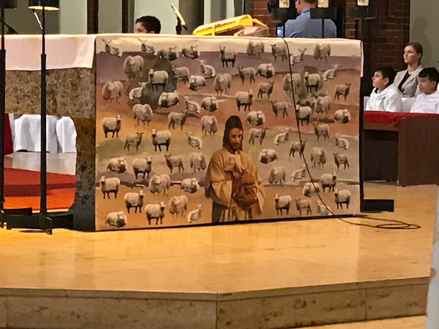 ”A vi dragi roditelji, vaša je obaveza i dužnost da se molite Isusu za svoju djecu, da njihova duša ostane čista bijela, da njihov život ostane na Kristovom putu. Biće razni putovi koji će voditi i u krivo ali ostanite na Kristovom putu. Ova slika ispred oltara prikazuje nam Isusa dobrog pastira i vidimo oko njega stado ovaca, na tim ovcama je vaše ime i prezime.