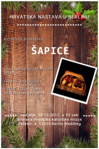 Naime, ovo kazalište predstavit će se berlinskim Hrvatima, djeci i njihovim roditeljima, predstavom naslova “Šapice”, u nedjelju, 10. prosinca u 13 sati i dvorani Hrvatske katoličke misije Berlin, na adresi: Feldstr. 4, 13355 Berlin.