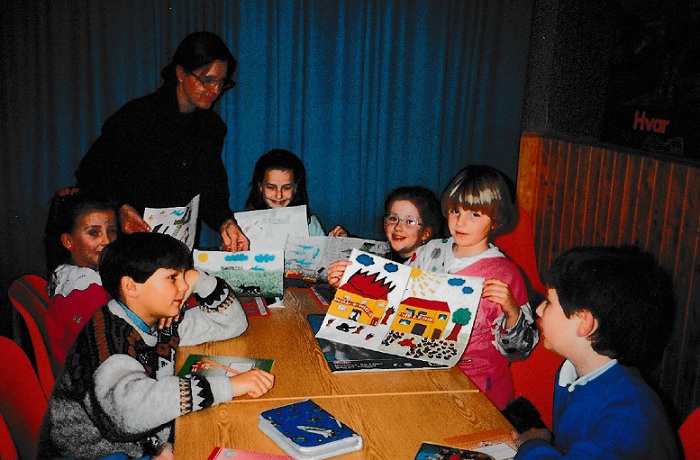 Knjige smo kupovali u Stuttgartu i skripte koje je uradila učiteljica Kostović. Radilo se po programu predviđenom za Hrvatsku nastavu. Pored učenja, rađene su i likovne radionice na temu rata u Hrvatskoj i BiH. Izložba je obišla gotovo sve gradove u NRW. Izložbu su otvarali predsjednik sabora Domjan, Granić, biskup Prenza i drugi. Radovi su kasnije poslani u Australiju na neki natječaj gdje im se gubi svaki trag.