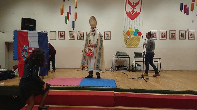 Doček zaštitnika djece u prepunoj dvorani priredila je Zajednica Hrvata, Ogranak Skopje.