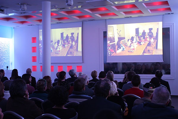 Prije projekcije filma riječ su preuzeli predstavljači. I to: Lidija Cvikić, prodekanica za znanost, umjetnost i međunarodnu suradnju Učiteljskog fakulteta Sveučilišta u Zagrebu, i jedna od vodećih stručnjakinja za inojezični hrvatski, ravnatelj Osnovne škole Milana Langa iz Bregane Igor Matijašić – prvo pero ovoga projekta, tv -novinarka i autorica kratkometražnog dokumentarnog filma Spomenak Marina Aničić Spremo i rukovoditeljica Odjela za školstvo, znanost i šport te planetarno uspješna voditeljica Male škole Lada Kanajet Šimić.