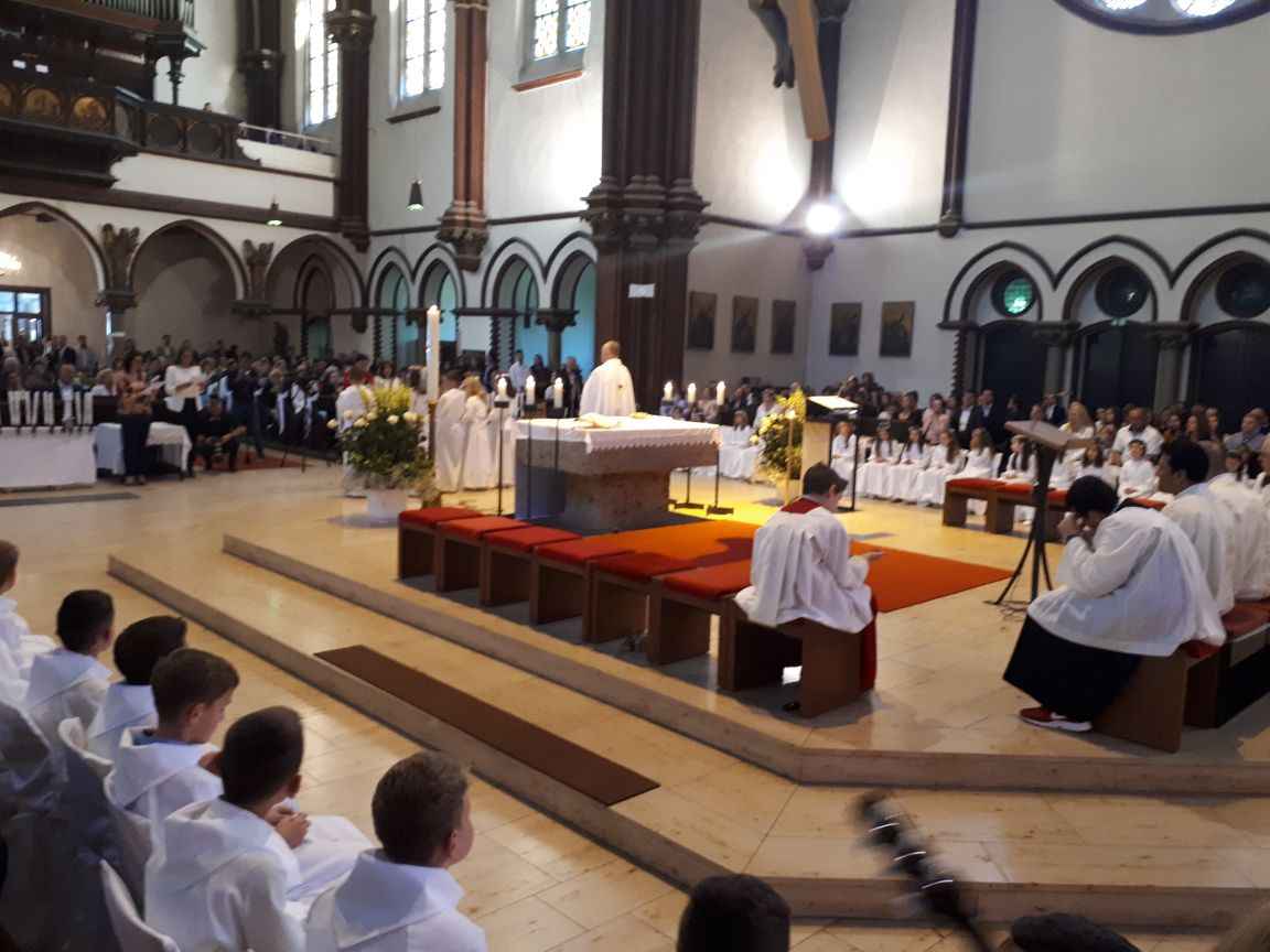 Berlin/ Pedeset i osam djevojčica i dječaka je u subotnje popodne primilo Prvu svetu pričest u crkvi svetog Sebastiana u berlinskoj četvrti Wedding gdje je sjedište Hrvatske katoiličke misije Berlin.