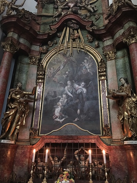 S druge strane ceste, nedaleko dvorca je Franjevački samostan i crkva svetog Roka, zaštitnika grada. Po oslobođenju kraja od Turaka 1746. počinje gradnja crkve. Unutrašnjost crkve je posebno dojmljiva u bogatom, baroknom stilu. Posebno su lijepi oltari – sa slikama i kipovima svetaca. Jedan me se posebno dojmio oltar s kipovima ljudi u podnožju, koje proždire vatra. Iznad je slika umirućeg sveca, kojeg pridržavaju anđeli. Raj i čistilište. Nebo i zemlja.