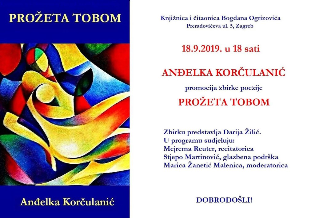 Zagreb/ Nova zbirka pjesama splitske pjesnikinje Anđelke Korčulanić, naslova “Prožeta tobom”, večeras, 18. rujna, doživjet će svoju promociju pred ljubiteljima poezije u hrvatskoj metropoli.