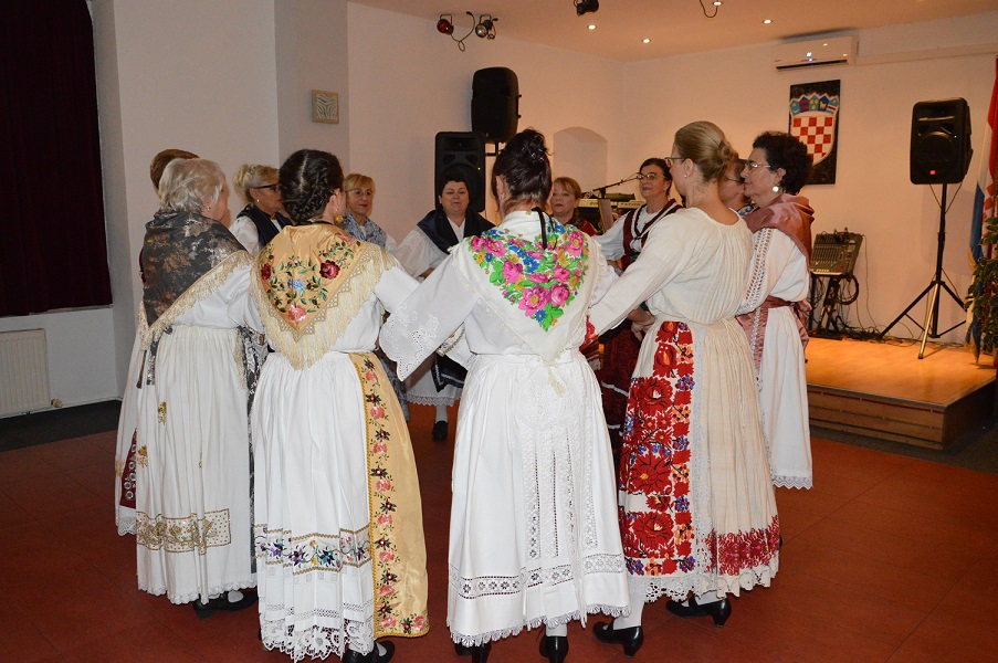 Bilo je svega što jedna ovakva večer treba: pozdravnih riječi predsjednice Karmen Meić, plesa folklora kojega vodi Ankica Andrić, ugodnih domaćica večeri Mire Kiš i Silvije Stoye, pjesme “Lastavica”, glazbe za ples grupe “Plamen“, mirisne sarme iz kuhinje Zajednice, domaćih kolača iz ruku domaćica, publike koja se izvrsno zabavlja…