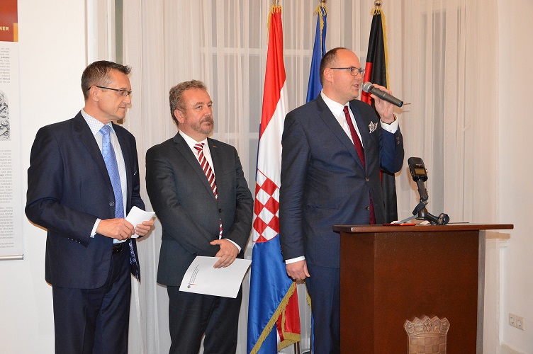 e su održali: Ivan Bojanić, otpravnik poslova a. i., Veleposlanstvo Republike Hrvatske u Berlinu, dr. Bernd Fabritius, povjerenik Savezne vlade za pitanja Aussiedlera i nacionalnih manjina i dr. Harald Roth, direktor Njemačkog kulturnog foruma Istočna Europa. O izložbi su govorili: Vladimir Ham, predsjednik Njemačke zajednice u Hrvatskoj i Goran Beus Richembergh, predstavnik njemačke manjine u Zagrebačkoj županiji.