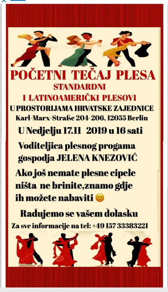 Berlin/ Hrvatska kulturno-umjetnička i sportska zajednica Berlin organizira Početni tečaj plesa.