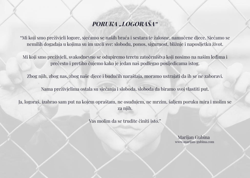 Marijan Gubina, autor romana “260 DANA”, kao desetogodišnjak je proživio i preživio zarobljavanje koje je trajalo dugih 260 dana, proživio nasilje nad cijelom obitelji, vidio užasne stvari, dotaklo ga zlo u onom najgorem obliku.