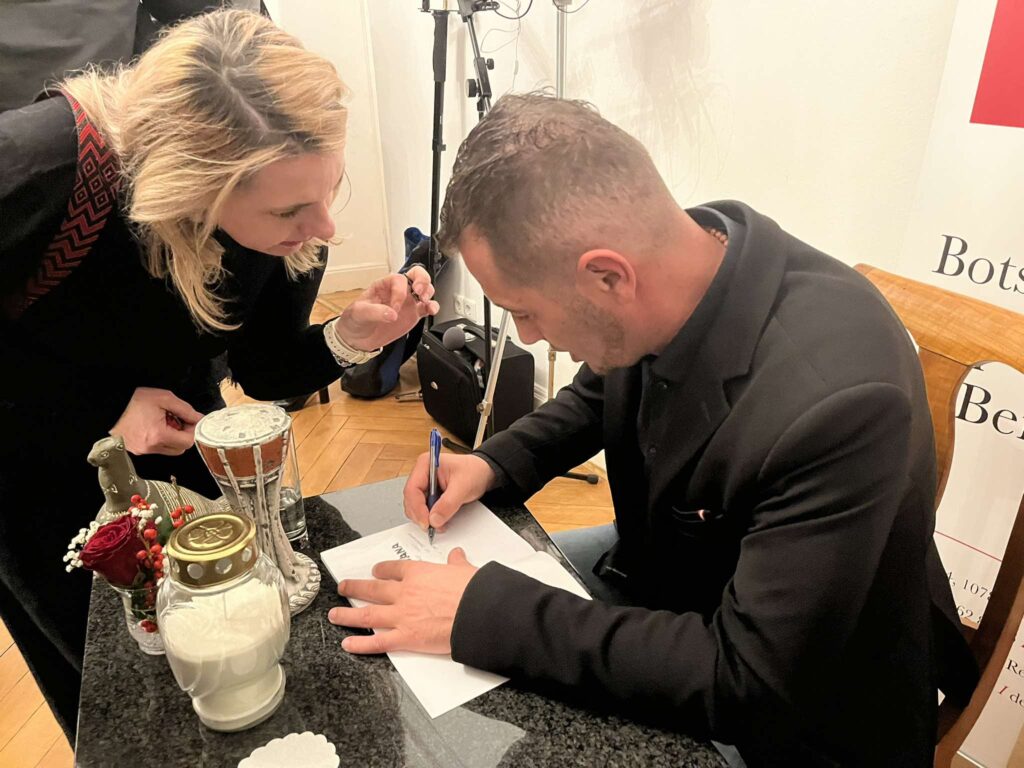 Autor Marija Gubina na kraju je proveo prilično vremena ispunjavajući želju svih koji su željeli imati roman “260 dana” i njegov potpis na knjizi. Večer je nastavljena druženjem autora i gostiju na domjenku kojeg je priredilo Veleposlanstvo Republike Hrvatske. Bila je to večer puna emocija, ispunjena ugodnim glasovima, lijepim pjesmama i osjećajem povezanosti, suosjećanjem (pa i pokojom suzom) i toplinom svih koji su sudjelovali, čitali, pjevali, gledali i slušali o autentičnom i potresnom doživljaju glavnog aktera i gosta iz Hrvatske, Marijana Gubine.