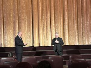 Prije same projekcije filma publici se kratko obratio redatelj Jakov Sedlar zahvalivši dr Nikoli Eteroviću riječima: “Čast mi je da je pristao govoritiza film” kao i veleposlaniku Gordanu Bakoti, fra Zvonku Tolići i, kako je rakao “najboljoj hrvatskoj novinarki Ivani Petrović.