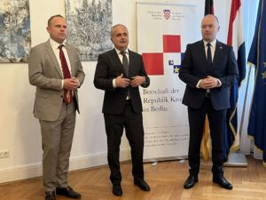 “Za vrijeme korone isplivala je neka ideja da se usklade aktivnosti, nastala je jedna zanimljiva sinergija, iznašli smo jedan zanimljiv zajednički okvir na kojemu smo mogli ostvariti lijepe kulturne aktivnosti”, rekao je Stjepan Škorić upoznajući ukratko okupljene s radom najstarijeg kulturnog društva u Berlinu koje pri misiji djeluje od 1980. godine, te zahvaljujući svima na suradnji.