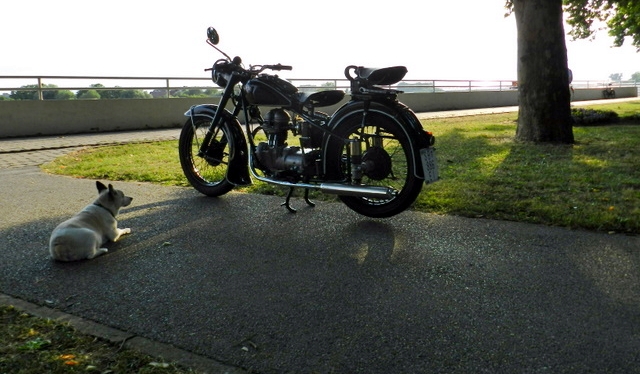 Zaljubio sam se u ovaj BMW iz 1953. godine. Mora biti da je na njemu puno ugodnije nego u gazdinom autu, ali gazda mi je zabranio voziti motor. Kaže …nije to za pse i za životinje uopće. Svašta priča, jer to nije istina. Ja sam vidio u našem gradu dosta životinja na motoru, ali šta ćeš …moram slušati.