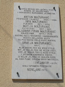 Berlin/ Tekst i fotografije što nam ih iz Novog Vinodolskog posla Josip Mayer pokazuje i ukazuje na rodnu kuću Mažuranića u Novom Vinodolskom. Treba joj obnova …kaže se u tekstu i slici. Domu Mažuranićevih i djeci u njemu treba pomoć …tvrdi autor. Mi prenosimo tekst sa spomen ploče koju na pročelju kuće 1955. godine, postaviše Novljani. – U ovoj nekad seljačkoj kući rodiše se prvoborci narodnog jedinstva ANTUN MAŽURANIĆ, profesor i slavist 1805.-1888., IVAN MAŽURANIĆ, pjesnik 1814.-1890., MATIJA MAŽURANIĆ, putopisac 1817.-1881., VLADIMIR FRAN MAŽURANIĆ 1859.-1928. Godine 1864. proširiše i nadogradiše očevu seljačku kuću te postaviše čelo kuće natpis BRAT JA MAŽURANIĆI.