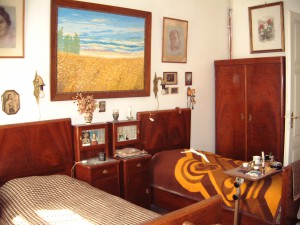 Sama soba bila je pak puna života. Puna stvari. Starinski namještaj je bio od crvenkastog mahagonija. Lijevo Majkičin i desno Nikičin krevet, odvojeni s dva noćna ormarića i malim pisaćim stolićem na kojem su se gomilali raznorazni književni časopisi, s obvezatnim „Glasom koncila“ na vrhu.