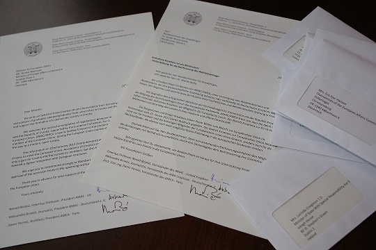 U pismu, kojeg potpisuju predsjednici ovih udrugâ, Nenad Bićanić, profesor emeritus, AMAC-UK, Aleksandra Brnetić, novinarka, AMA Croaticae – Deutschland e. V., i Damir Perinić, dipl. ing. arh., AMCA-Paris, ministre vanjskih poslova potiče se na provođenje postupka ratifikacije, a predsjednike nacionalnih parlamenata i njihove zastupnike moli da tijekom glasovanja svojim glasom odobre pristupni ugovor.