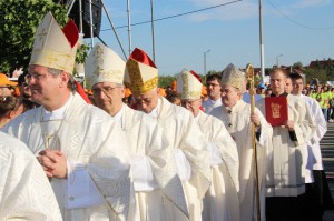Krenuli smo pjevajući prema mjestu događanja. Za vrijeme našeg hoda, vidjeli smo sve više i više mladih koji su nosili majice različitih boja a svi zajedno smo nosili istovjetan logo ovogodišnjeg Susreta. Kad smo stigli do Trga bana Jelačića gdje se nalazi i crkva sv. Križa sreli smo se sa sestrom Anicom, bivšom Berlinčankom i mladima iz Hrvatskog Leskovca s kojima smo skupa išli za vrijeme procesije. Prije nego je počela procesija skupa smo napravili krug i pjevali himnu susreta. Zajedno smo utrvrdili znakove pjesme i uživali u sjaju zajedničke ljubavi koja je bila toliko jaka da su se i brojni drugi priključili tom žaru.