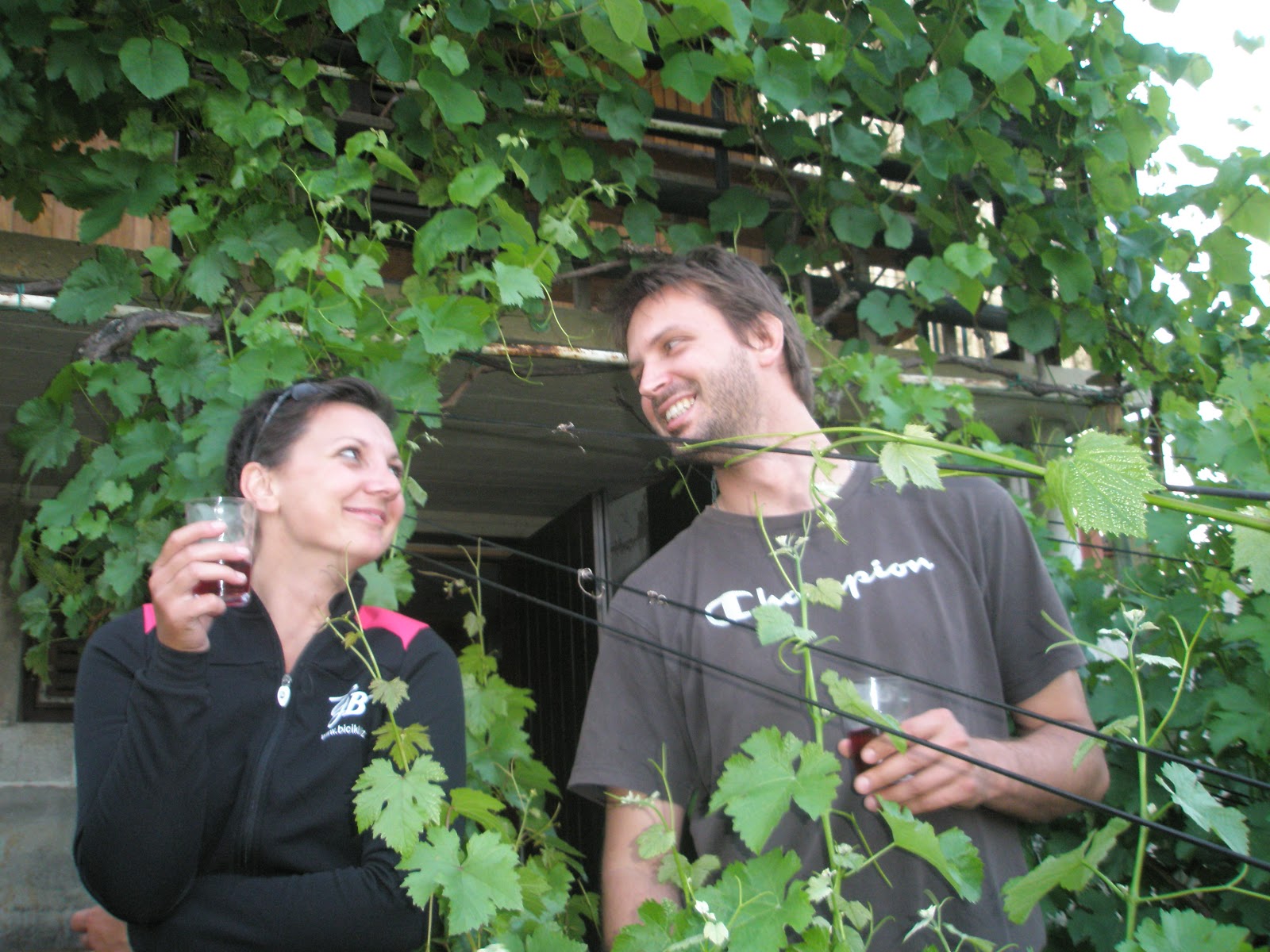 Iz Samobora je sa mnom krenula i Petra, suputnica iz Slavonije. Cilj prvog dana je bio Zabok gdje nas je dočekao Hrvoje. Na putu do tamo, zadnja guma mi se probušila. Jel’ to peh broj jedan? 🙂 Trn toliko sitan, a opet tako moćan. Čudim se da sam ga uopće i primijetila u vanjskoj gumi. No, u Zaboku nas je čekala večera, dobro društvo, zalazak sunca u vinogradu i uživanje u Hrvojevim plesnim koreografijama do dugo u noć. A Hrvoje je super momak. Baš onakav kakvi se traže na ovom svijetu …ispravan, pravedan, jakog karaktera i čvrste volje da pomogne, da napravi dobro, da ukaže na nepravdu – Zagor 🙂