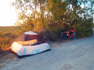 Doručak uz izlazak sunca i spremanje prema Bezeirsu. Već nakon par okretaja pedala, guma prazna. Skidaj sve s bica, mijenjaj gumu, ok, ajmo dalje. Pitam par ljudi za put i da li ima biciklistička staza ili neka mala cestica. Kažu, samo autocesta. Fak!
