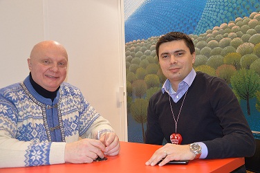 E, ugledasmo i poznato lice! Je, je, to je Dori (Izidor Pećovnik),svećenik Slovenske katoličke misije u Berlinu. Dragi čovjek i veliki prijatelj Hrvata i Hrvatske. Slovenski štand je na Zelenom tjednu odmah uz hrvatski pa se Dori uputio u obilazak ...Ja uvijek govorim mojim Slovencima kako se u očuvanju identiteta mogu puno učiti od vas Hrvata. U župi imam i dva vrtića i u njima ima dosta i hrvatske djece. Svako malo koje od djece ponese sportski crveno bijeli drese na kojemu piše Modrić …ja ih onda zazovem …Luka! …a njima to bude drago. E daj ti to vidi kod slovenske djece. Nema! Zato kažem …imamo tu puno učiti od Hrvata …