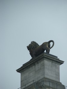 The Lion Mound – Lavlje brdo napravljeno je desetak godina iza krvave bitke od zemlje uzete sa bojišnice. Ispred mene nalazi se jednostavno zeleno brdo. Do vrha te samog 28 tona teškog spomenika lava vodi 226 stepenica. Vodič kaže kako lav simbolizira mir . Inače spomen brdo posvećeno je svim palim vojnicima na bojišnici Waterlooa, a podignuto je upravo na mjestu ranjavanja Princa od Orange, kasnije nizozemskog kralja Williama Drugog koji je se borio kod Waterlooa u britanskoj vojsci.