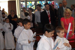 Nedjelja 5.svibnja, u misiji Koblenz bilo je svečano. U crkvu sv.Frane, naši prvopričesnici: Oliver, Stipan-Matej, Lara,Mirna, Leo, Franjo i Teresa, ušli su u svečanoj procesiji koju su predvodili ministranti. Dočekali su ih njihovi roditelji, braća, sestre i druga rodbina i prepuna crkva vjernika. Misno slavlje uveličao je misijski zbor i tamburaši.